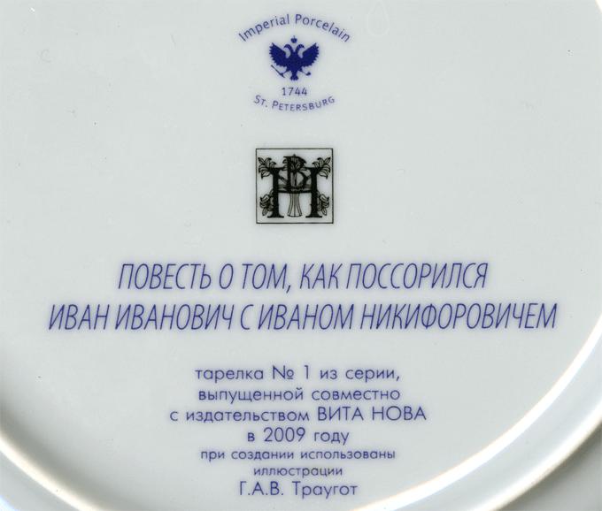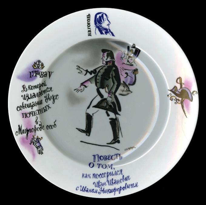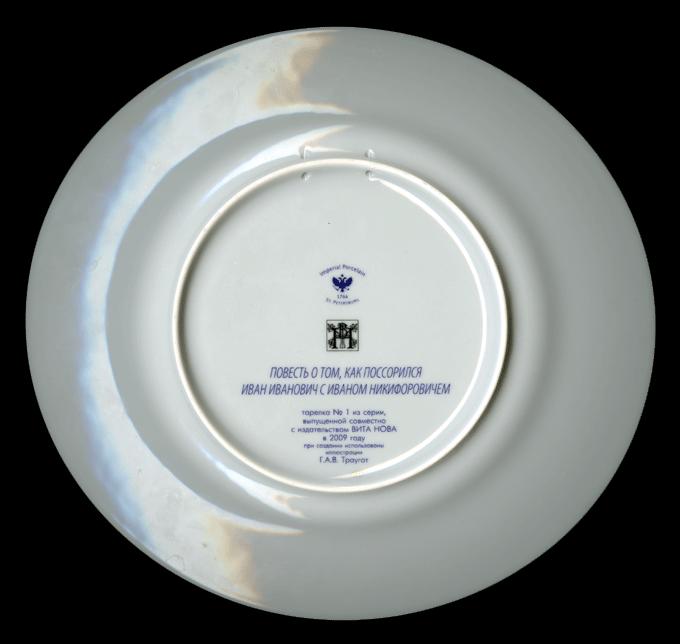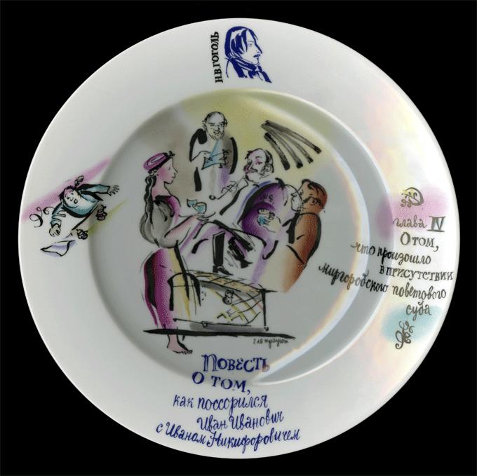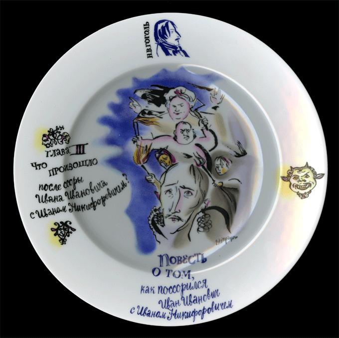 Набор тарелок по мотивам иллюстраций Г.А.В.ТРАУГОТ к произведению Н.В.Гоголя «ПОВЕСТЬ О ТОМ, КАК ПОССОРИЛСЯ ИВАН ИВАНОВИЧ С ИВАНОМ НИКИФОРОВИЧЕМ»