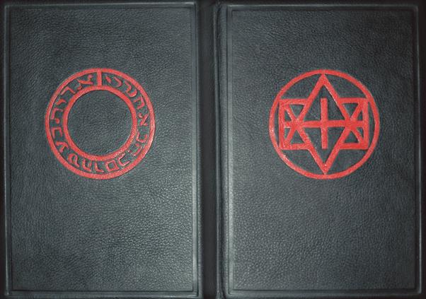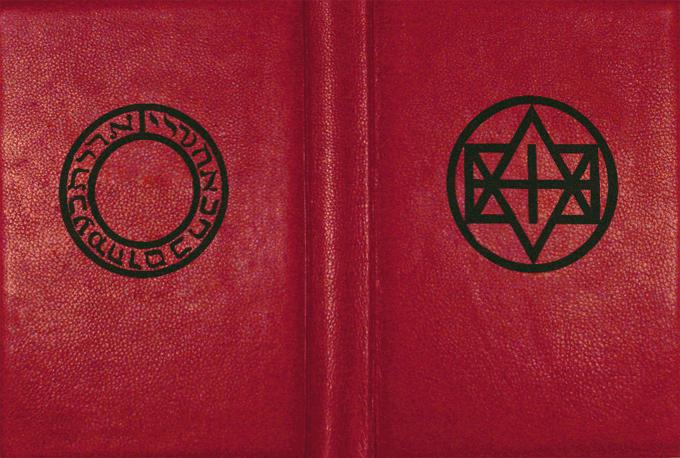 На переплете изображено магическое кольцо и круг доктора Фауста из «Трагической истории доктора Фауста» Кристофера Марло (1631).