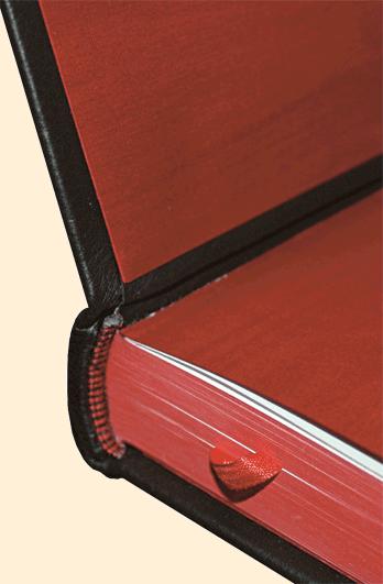 Цельнокожаный переплет изготовлен из марокена (теленок) черного цвета — специальной переплетной кожи высшего качества для художественных переплетов (Германия).