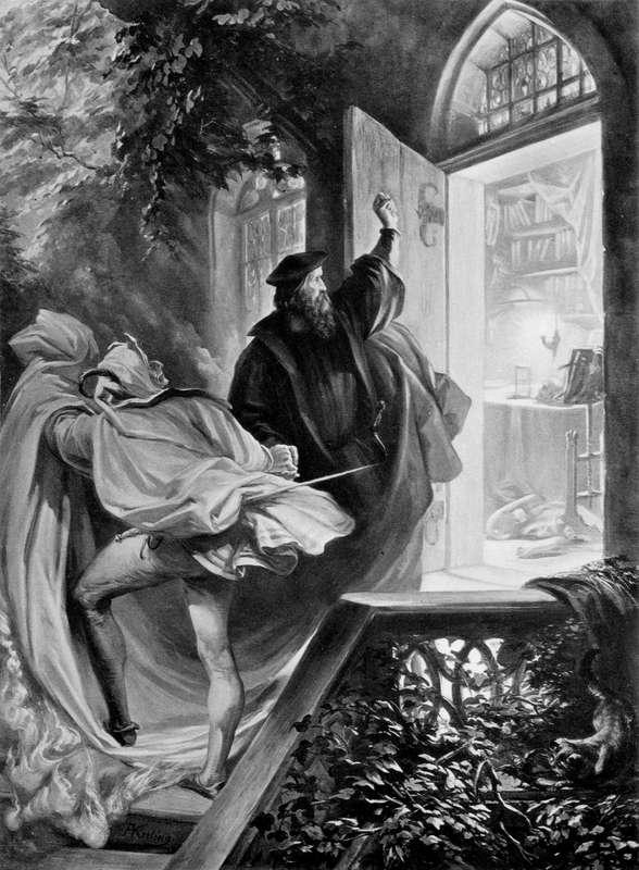 В девятом томе десятитомного собрания сочинений Иоганна Вольфганга Гёте (1749-1832) помещено одно из наиболее известных его творений — трагедия «Фауст». Легенда об ученом докторе, заложившем Мефистофелю душу в обмен на его обещание посвятить в секреты мироздания, показать бездны рая и ада, обогатить новым знанием, издавна волновала воображение людей. Гений Гёте сумел возвести Фауста в символ всего человечества, ищущего истину и устремленного вперед. Поиски смысла бытия, извечное желание человека проникнуть в тайну устройства Вселенной, противоборство созерцательного и деятельного отношения к жизни поднимаются здесь до вопроса о возможностях человеческого разума и нравственных границах дозволенного.