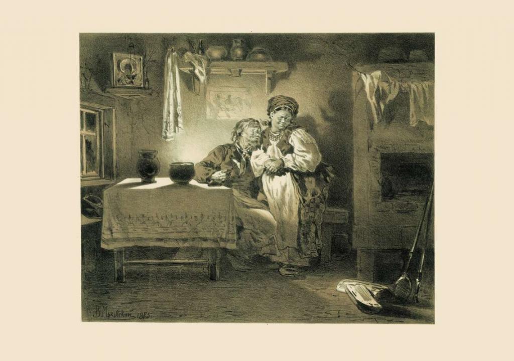 Представляя теперь вниманию читателей «Вечера на хуторе близ Диканьки» и «Миргород» с нашими рисунками и набросками — углем и пером — мы, конечно, далеки от того, чтобы думать, что они вполне исправляют недочеты прежних иллюстраций. Нам чужда была мысль определить пером и углем во всем богатом разнообразии и полноте красивые образы Гоголя. Мы хотели только дать читателям подходящий, не противоречащий духу гоголевского текста изобразительный материал, правдивый, не сдобренный ни карикатурой, ни шаржировкой и не прикрашенный по-театрально-праздничному, а такой, каким сохранила его наша память от тех лет, когда мы сами жили и росли среди мест и типов, описываемых Гоголем. И если наши рисунки помогут читателю несколько живее перенестись мыслью в ту же среду и обстановку, если те бытовые мелочи и подробности, о которых Гоголь упоминает вскользь и которые мы намечаем определенно, дополнят это, мы будем считать нашу задачу исполненной. Насколько мы подошли к ее решению — судить, конечно, не нам.