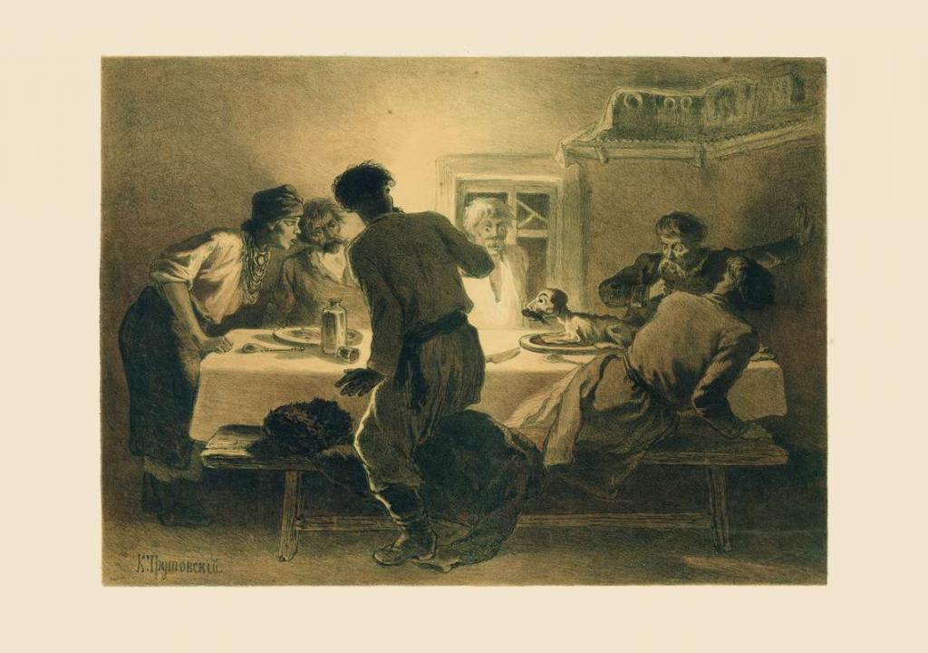 Иван Николаевич Крамской (1837–1887), Илларион Михайлович Прянишников (1840–1894) и Константин Егорович Маковский (1839–1915) были членами-учредителями Товарищества; Владимир Егорович Маковский (1846–1920) вступил в него в 1872 году. В работе над циклом также принимали участие братья Чичаговы: Михаил Николаевич (1837–1889) и Дмитрий Николаевич (1835–1894), более известные как архитекторы (им принадлежат проекты многих сооружений в «русском стиле», возведенных в Москве и в провинции). Десять иллюстраций в этом цикле выполнены Константином Александровичем Трутовским (1826–1893), популярным в свое время живописцем и графиком, автором многочисленных жанровых картин на сюжеты из крестьянской жизни. Трутовский вспоминал, что увлечение творчеством Гоголя возникло у него еще в ранней юности, в годы обучения в Главном инженерном училище, куда он поступил в 1839 году, причем определяющее влияние на восприятие гоголевских произведений оказал него старший соученик, Федор Михайлович Достоевский: «Он просто открывал мне глаза и объяснял глубину и значение произведений Гоголя. Мы, воспитанники училища, были очень мало подготовлены к пониманию Гоголя, да и немудрено: преподаватель русской словесности, профессор Плаксин, изображал нам Гоголя как полную бездарность, а его произведения называл бессмысленно-грубыми и грязными. Но значение Гоголя было в то время уже так велико, а юность так восприимчива к новым великим талантам, что никакие профессора старого закала не могли затмить для нас образ великого Гоголя. Мы зачитывались его “Вечерами на хуторе близ Диканьки”. Конечно, на нас, юношей, действовала больше внешняя сторона его произведений — его юмор и лиризм».