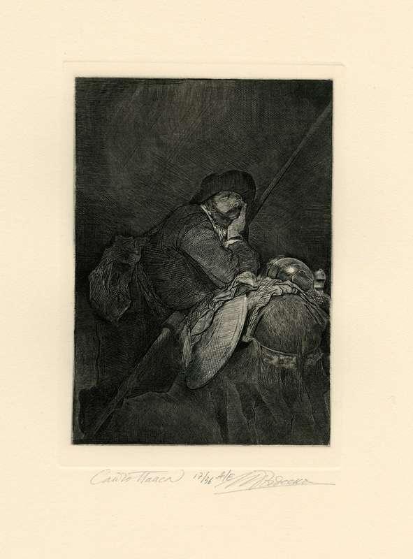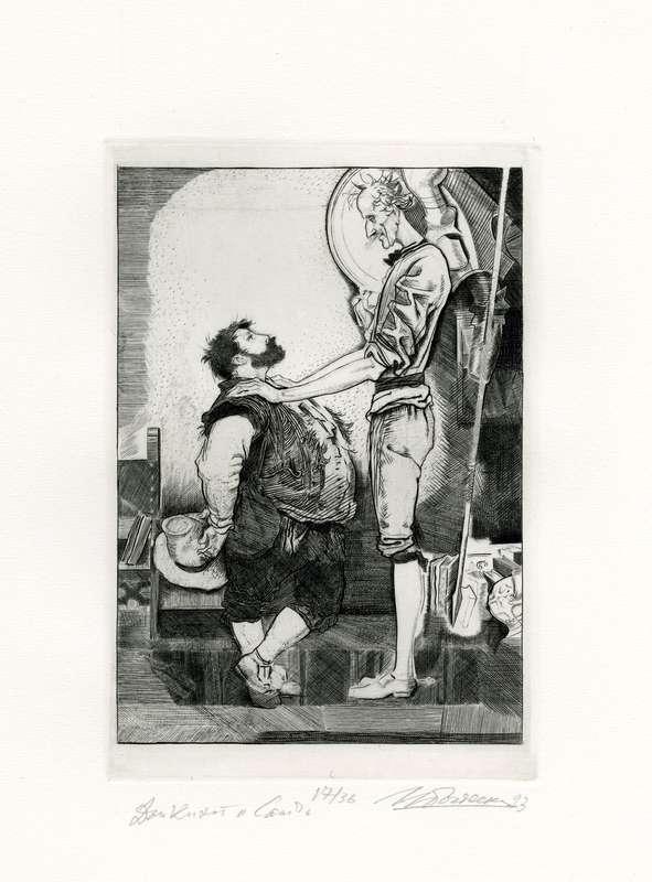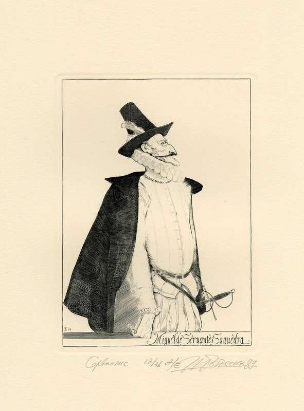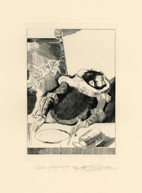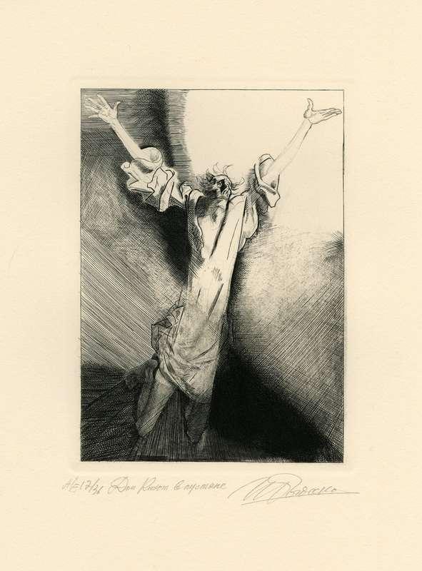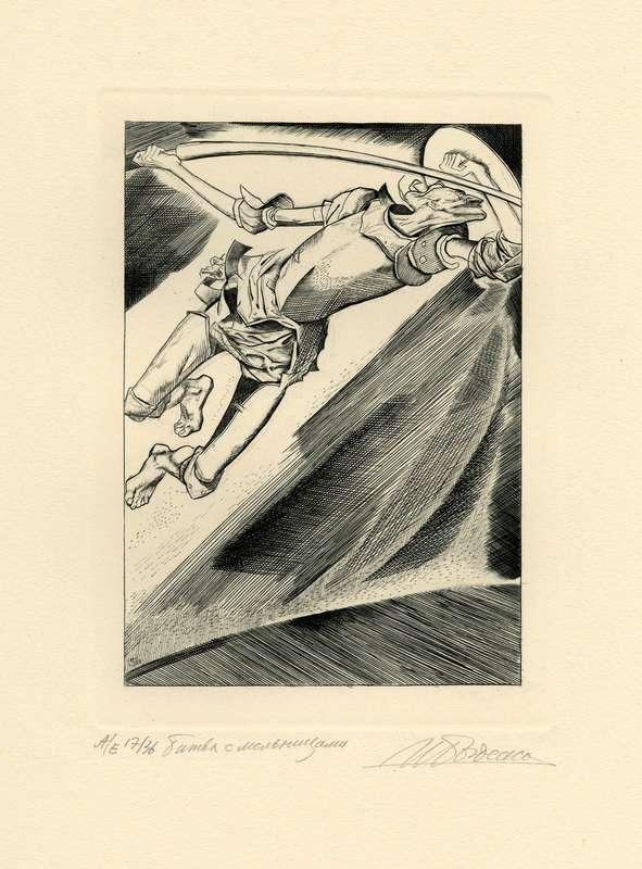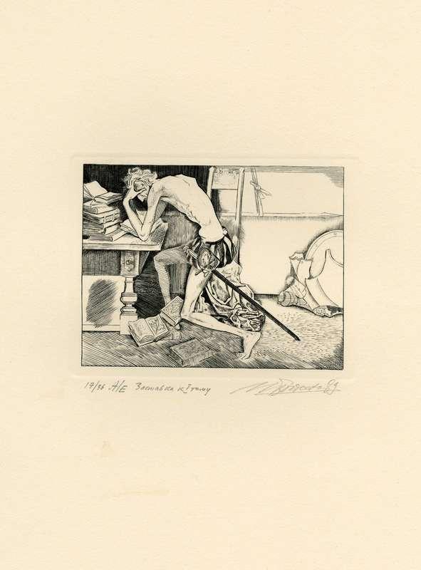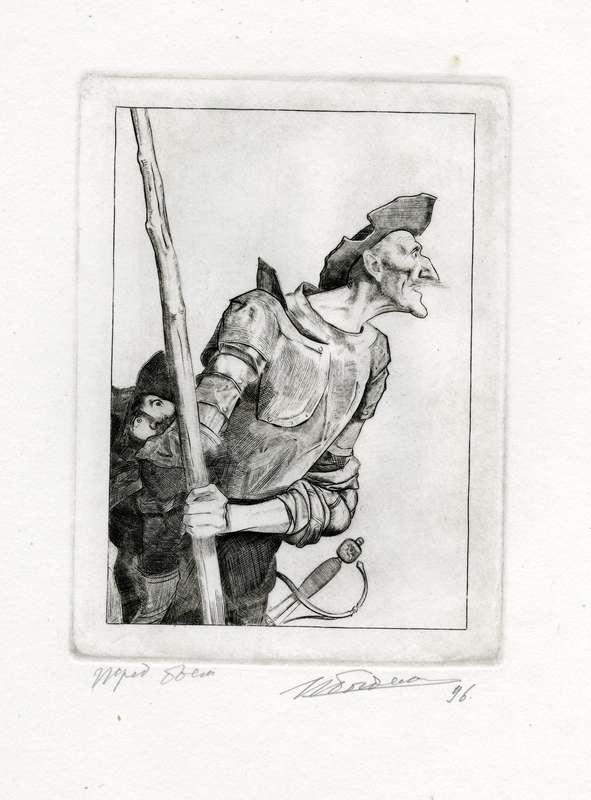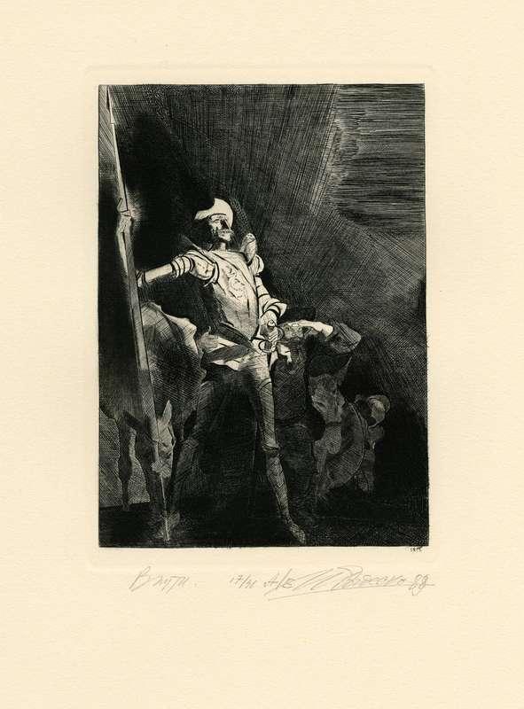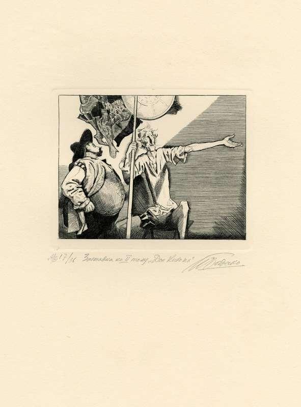 Папка, содержащая оригинальный офорт Ильи Богдеско  к изданию «ХИТРОУМНЫЙ ИДАЛЬГО ДОН КИХОТ ЛАМАНЧСКИЙ»