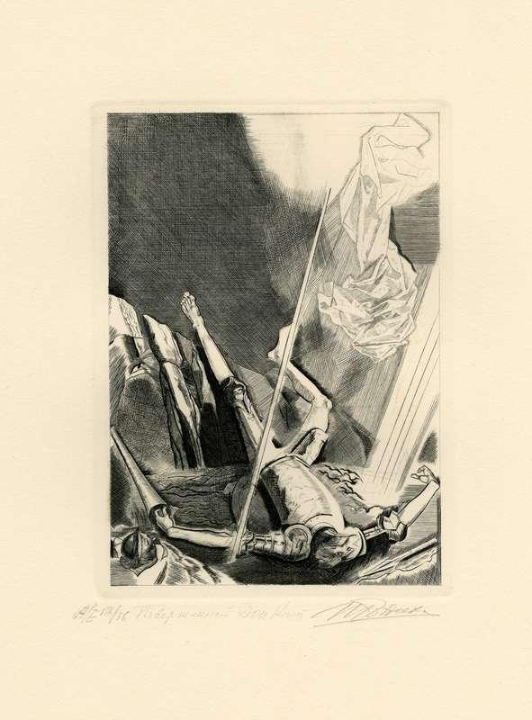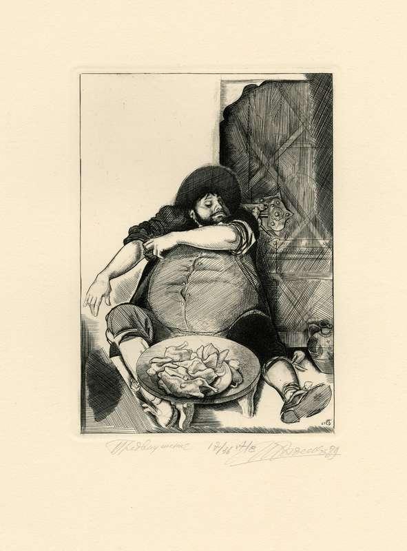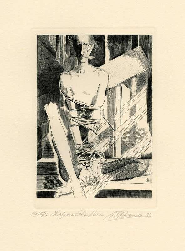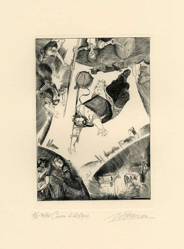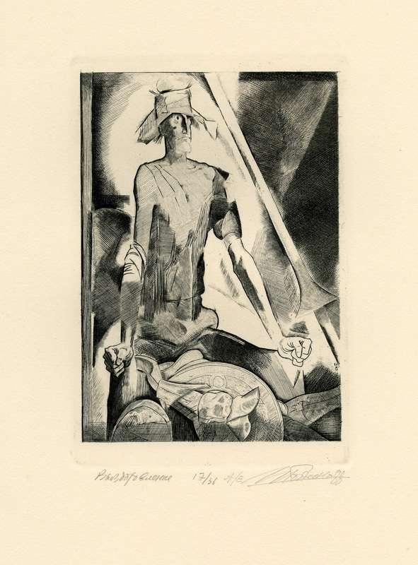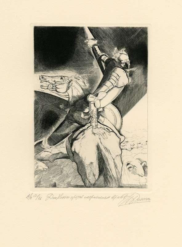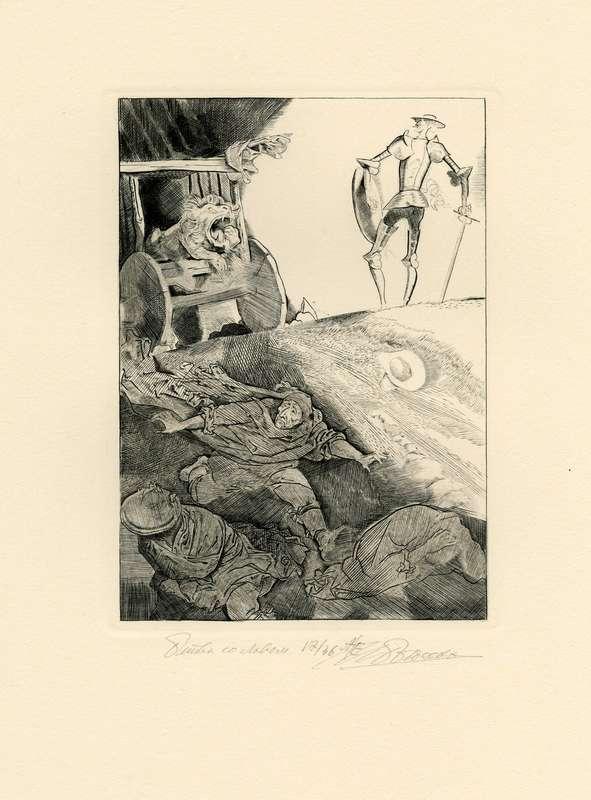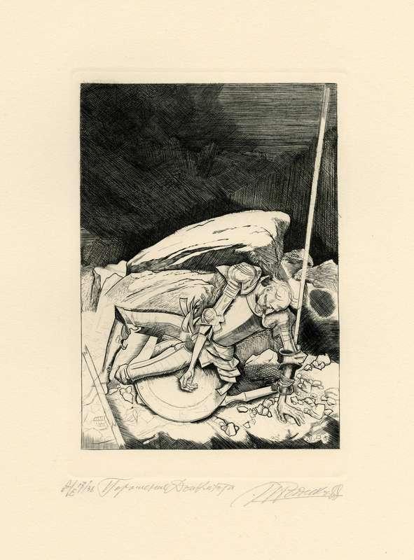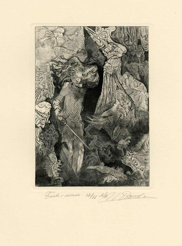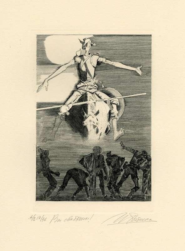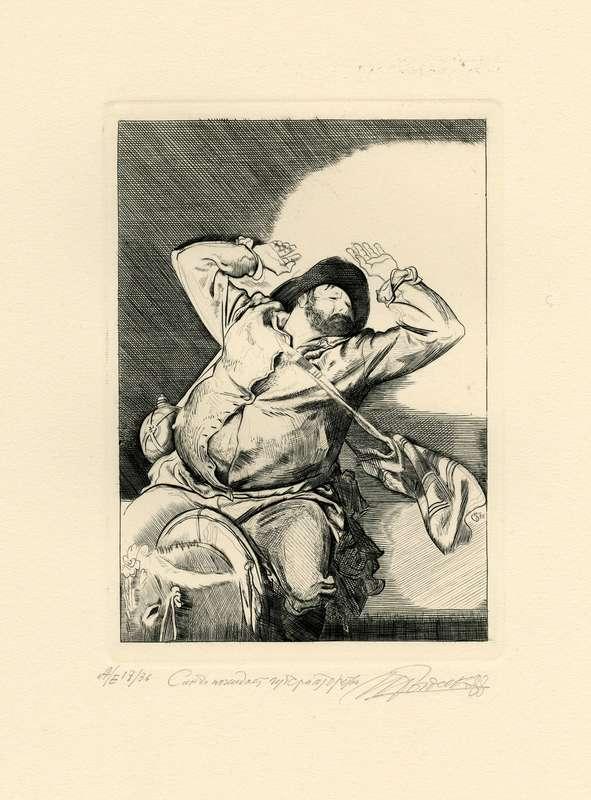 Папка, содержащая оригинальный офорт Ильи Богдеско  к изданию «ХИТРОУМНЫЙ ИДАЛЬГО ДОН КИХОТ ЛАМАНЧСКИЙ»