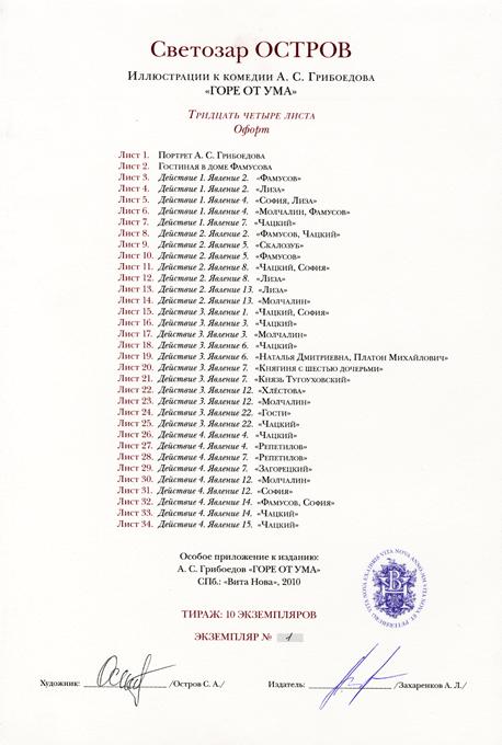 сопровождаются специальным приложением -  особой папкой, содержащей сюиту из 34офортов Светозара Острова.