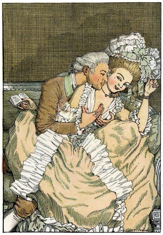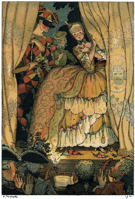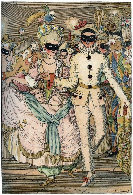 С 1918 года Сомов — профессор Петроградских государственных свободных художественных учебных мастерских. В 1923 году художник с выставкой современного русского искусства уехал из cо-ветской России в командировку в Нью-Йорк, остался за рубежом и с 1925 года обосновался в Париже. Он по-прежнему активно работал как живописец и график-станковист, но занимался и книжной графикой: им были подготовлены циклы рисунков к «Манон Леско» аббата Прево (1926), «Дафнису и Хлое» Лонга (1930), «Опасным связям» Шодерло де Лакло (1934).